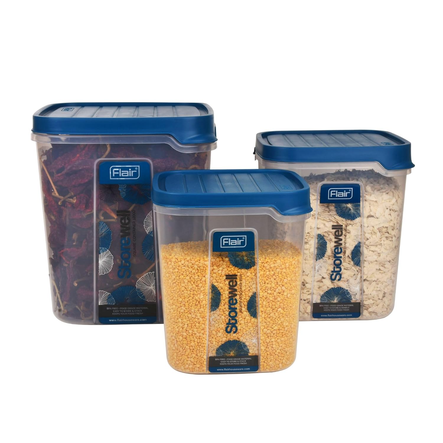 Q: What is the price of FLAIR Plastic Storewell Square Food Storage Containers Set Of 3 (6L, 8L, 12L)- Blue, Air Tight Containers For Kitchen Stor?