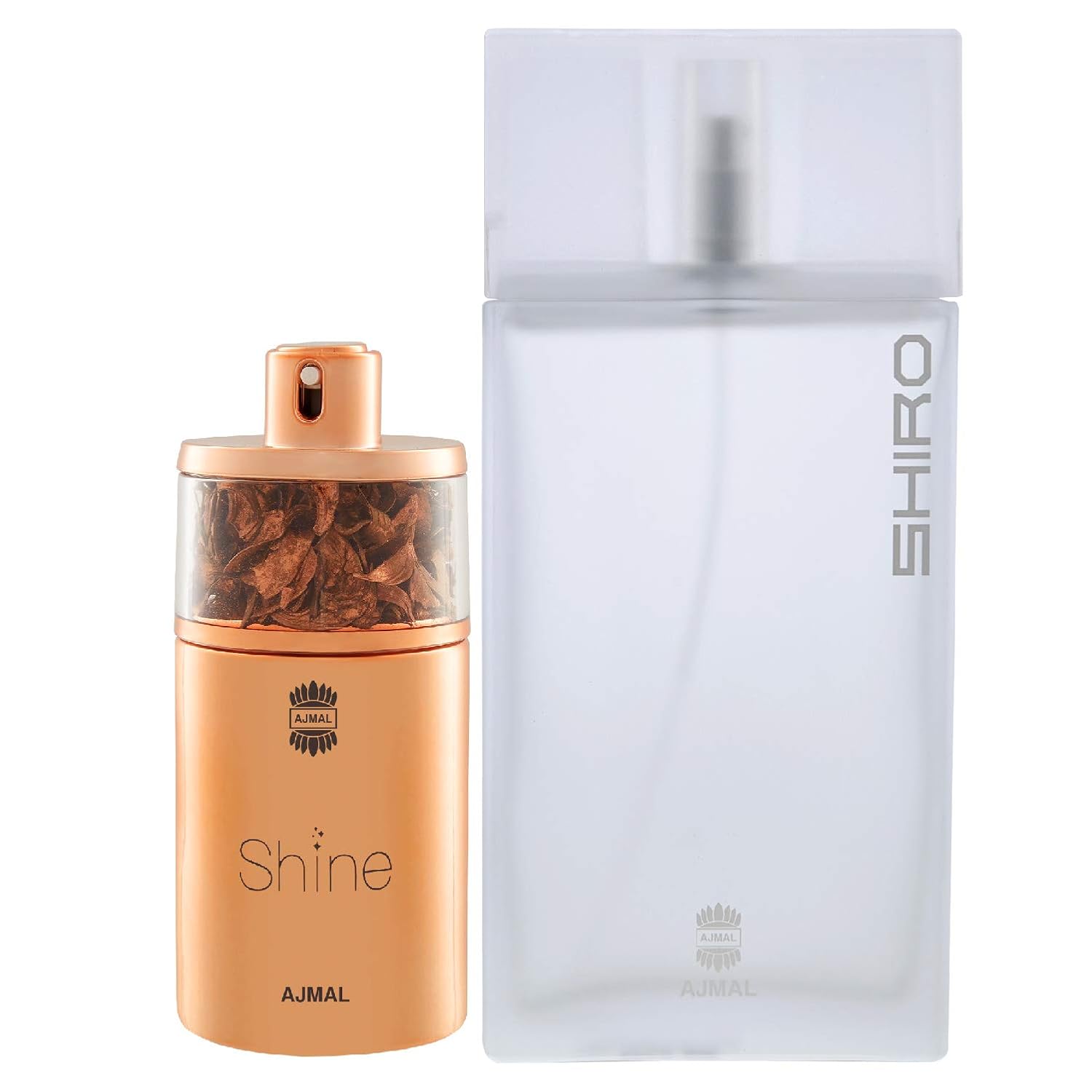 Q: What is the price of Ajmal Shine EDP Floral Powdery Perfume 75ml for Women and Shiro EDP Citrus Spicy Perfume 90ml for Men?