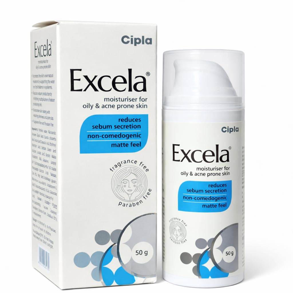 Excela Moisturiser for Oily & Acne Prone Skin, Reduces Sebum Secretion, Non-Comedogenic, Matte Feel, Fragrance Free, Parab...