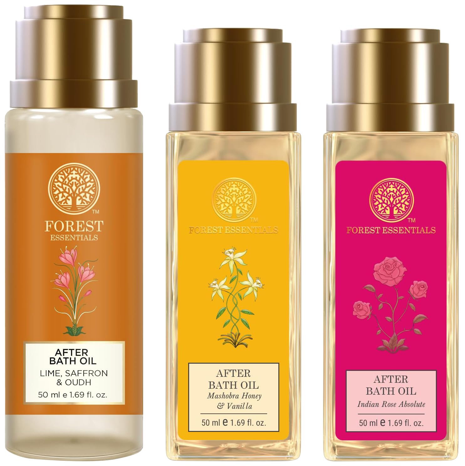 Forest Essentials After Bath Oil Set - Lime Saffron Oudh + Mashobra Honey Vanilla + Indian Rose Absolute | Ayurvedic | For...