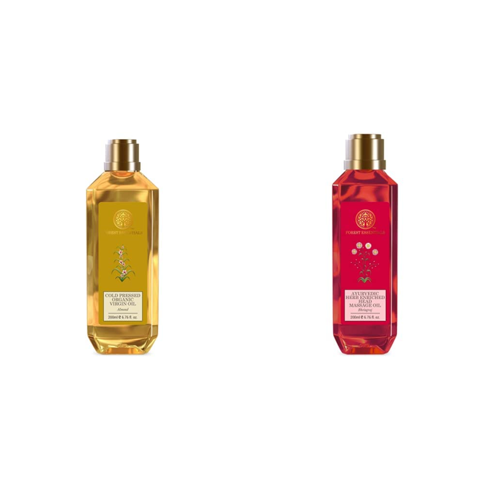 Forest Essentials Organic Cold Pressed Almond Virgin Oil, 200ml & Forest Essentials Ayurvedic Bhring Raj Herb Enriched Hea...