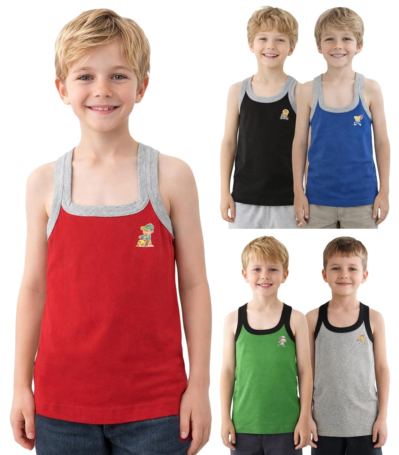 Lux Cozi Boy's 100% Cotton Round Neck Sleeveless Color Vest | Vest for Boys | Color and Print May Very | Pack of 4