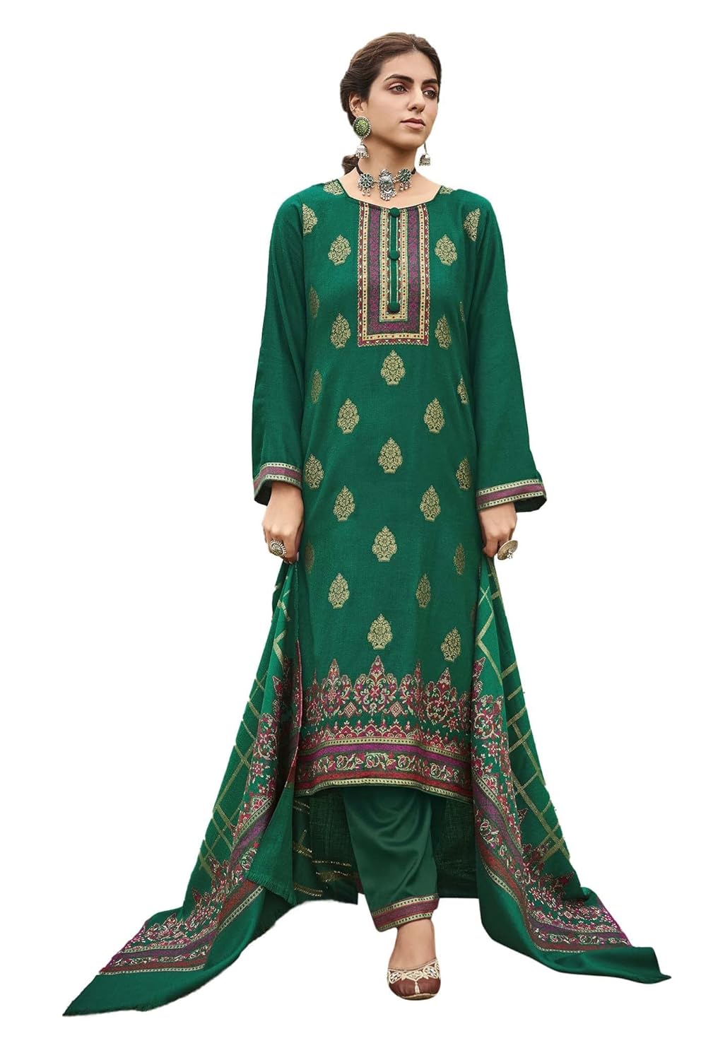 DRAVINAM Trends Women's Unstitched kanni Weaving Jacquard Woollen Pashmina Salwar Kameez Dress Material with Pure Wool Pas...