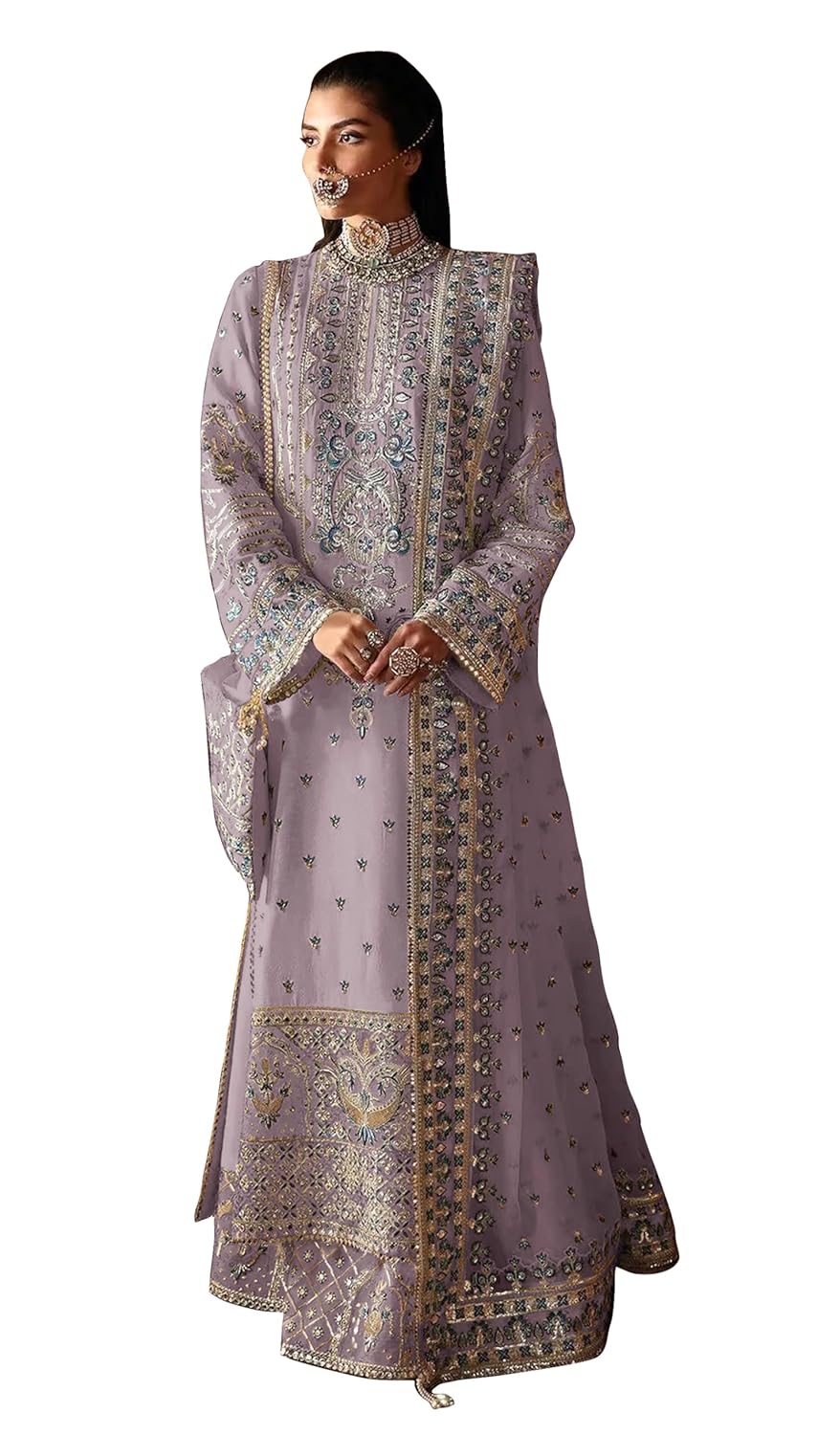 RUDRAPRAYAG Women's Georgette Fabric With Embroidery Work Traditional Ethnic Semi Stitched Pakistani Long Suit With Work D...