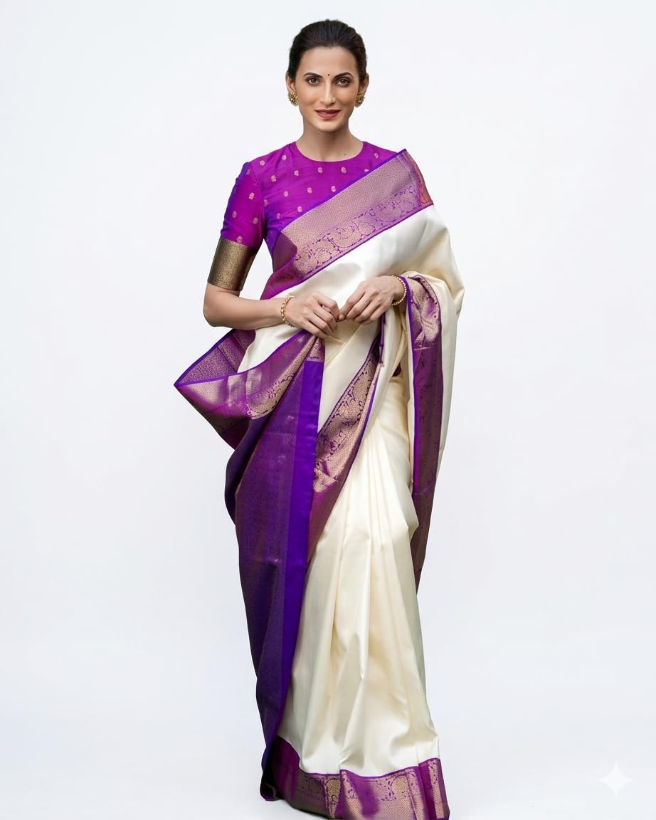 Women's Banarasi Silk Jacquard Kanjivaram Saree With Litchi Silk Unstitched Blouse Piece (B-Sita)