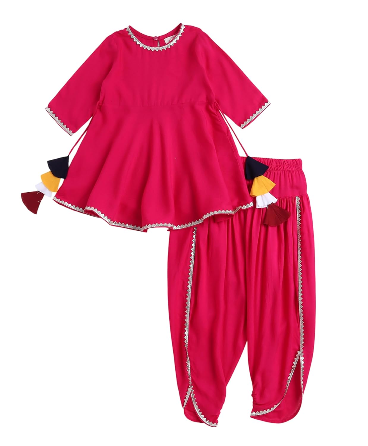 The Magic Wand Woven Half Sleeves Solid & Printed Kurta Pant Set For Kids Girls, Ethnic Ballon Pant & Frock Type Kurti Tra...
