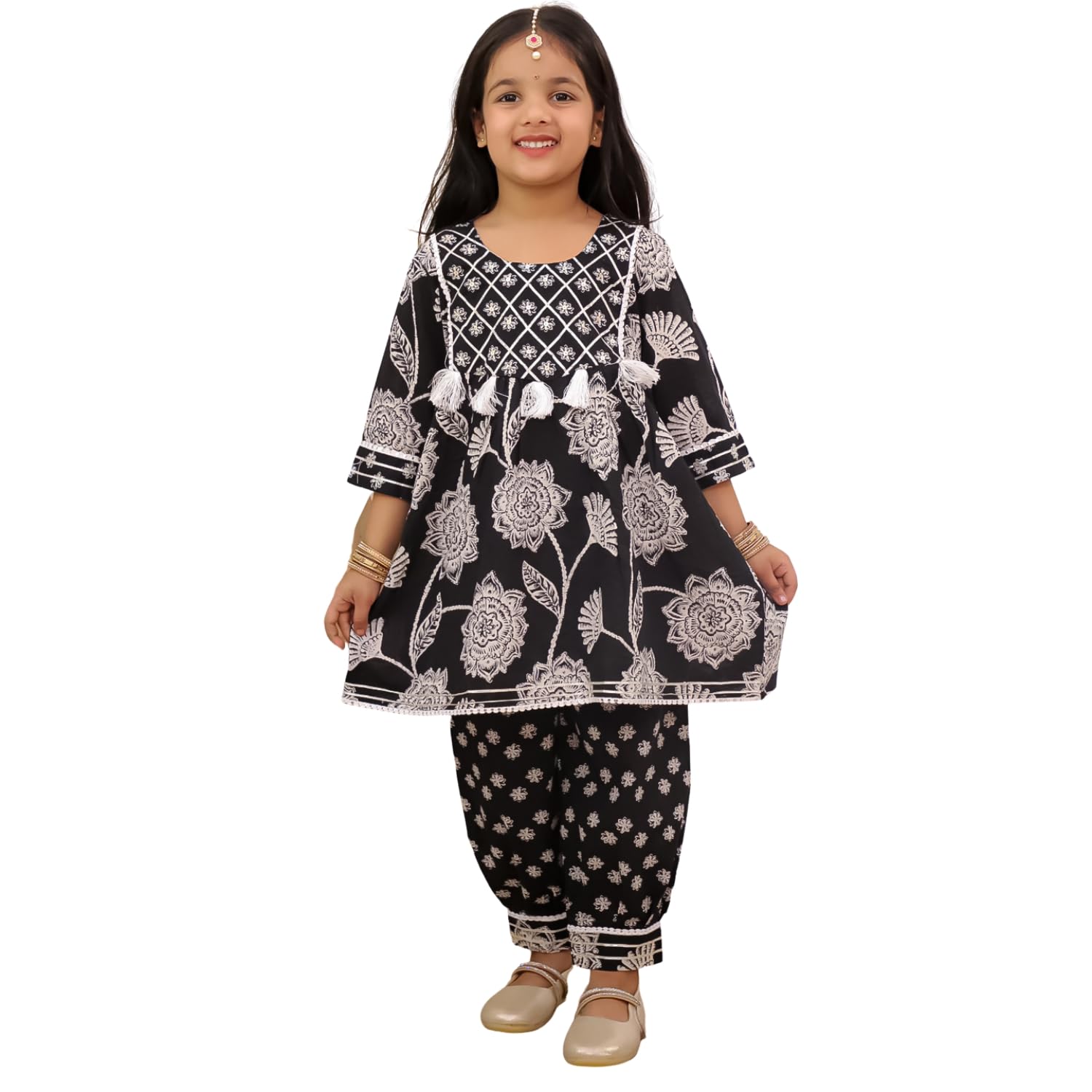 superminis Girls Cotton Floral Printed Gotta Work Kurti Duppata and Matching Afgani Ethnic Wear Set