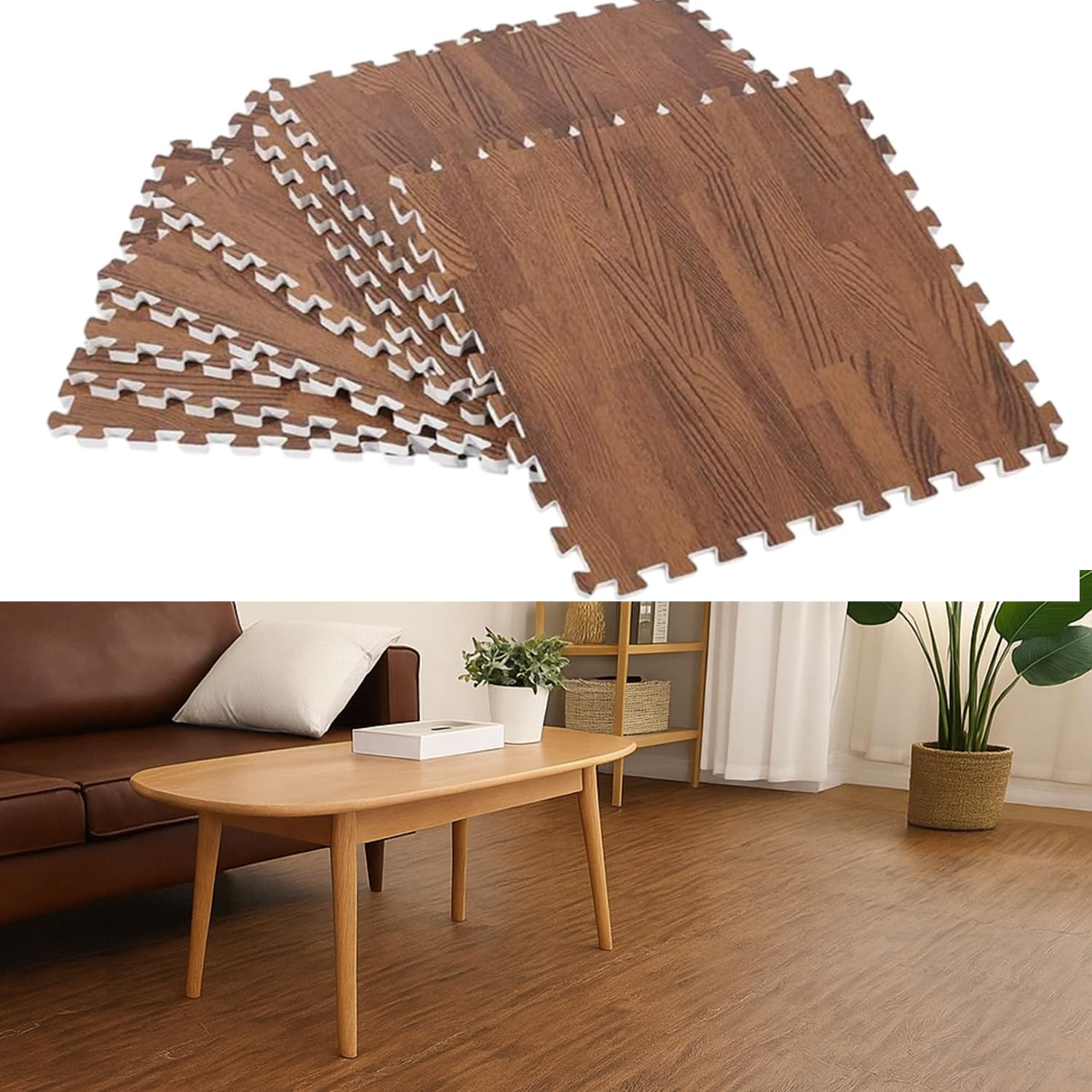 Nasmodo10MM/ 1CM Interlocking Wood Floor Eva Foam Mats Puzzle Mats for Floor Wood Grain Tiles for Home Office Playroom Bed...