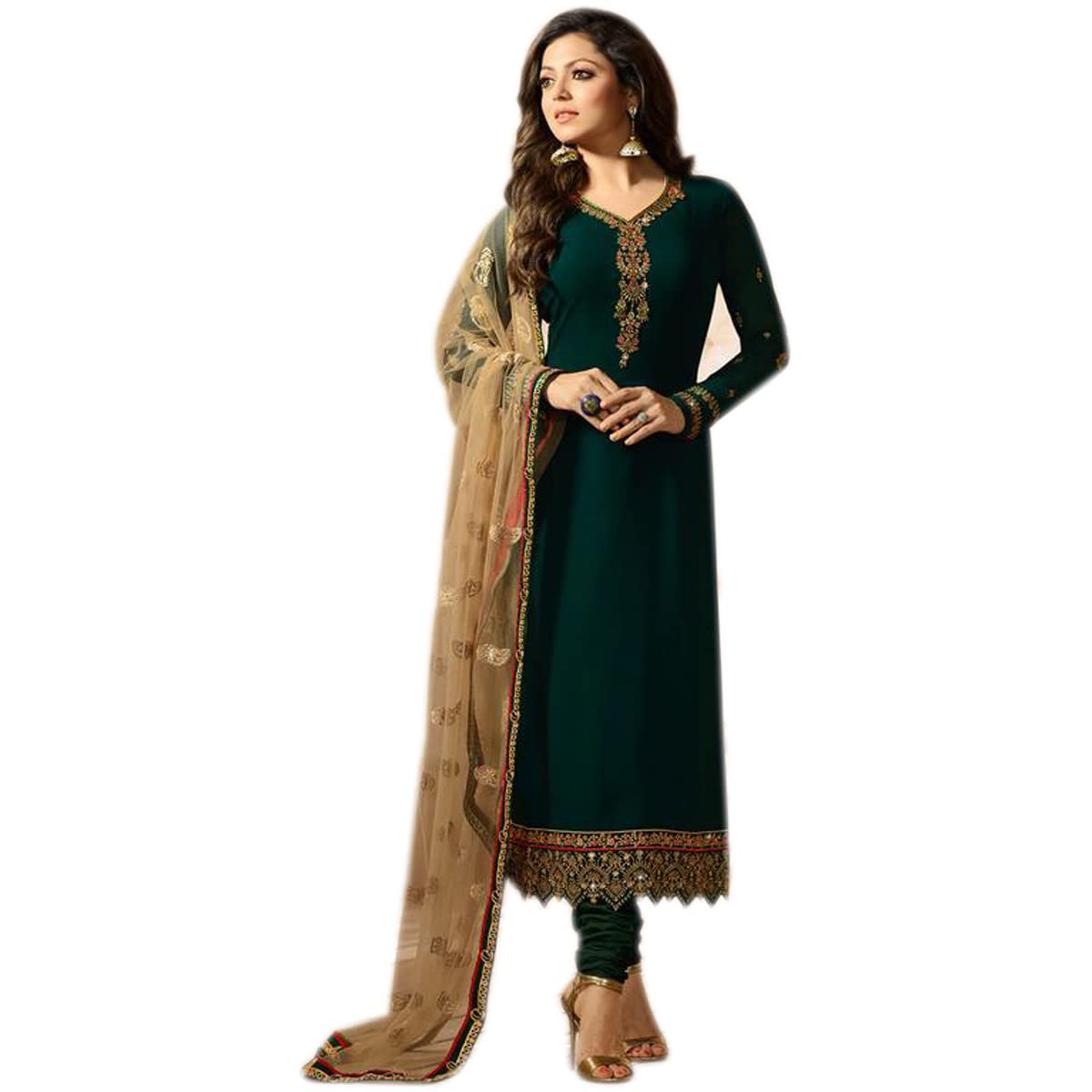 IYALAFAB® Women's Net Semi Stitched Anarkali Salwar Suit (Salwar Suit Pakistani suit-SF171-ver-09 Green Free Size)