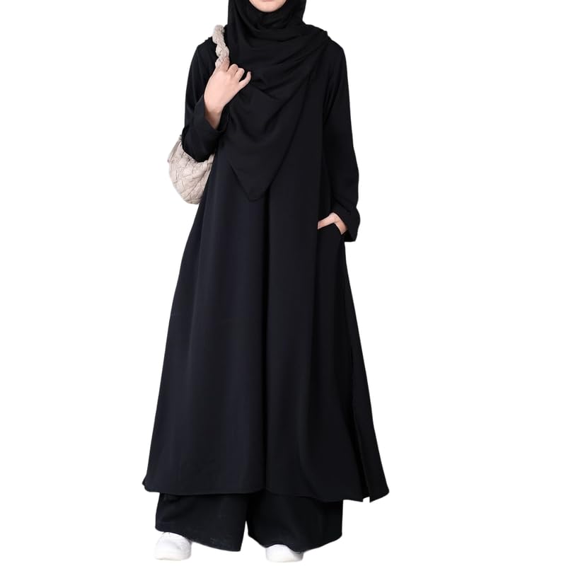 Muslim Closet� Knee Length Abaya With A Top And Plazzo - Made with Nida Matte for Women and Girls.