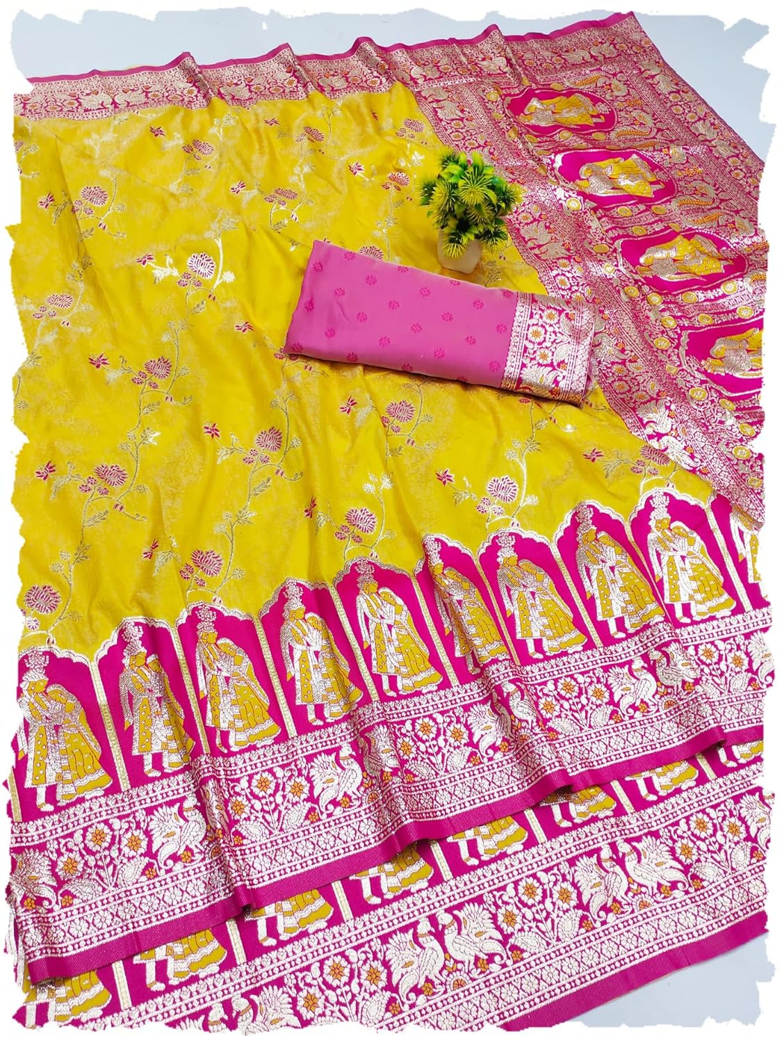Simnder Women's Banarasi Silk Saree Printed With Golden Zari Work With Blouse Piece | Banarasi Wedding Silk Saree For Wome...