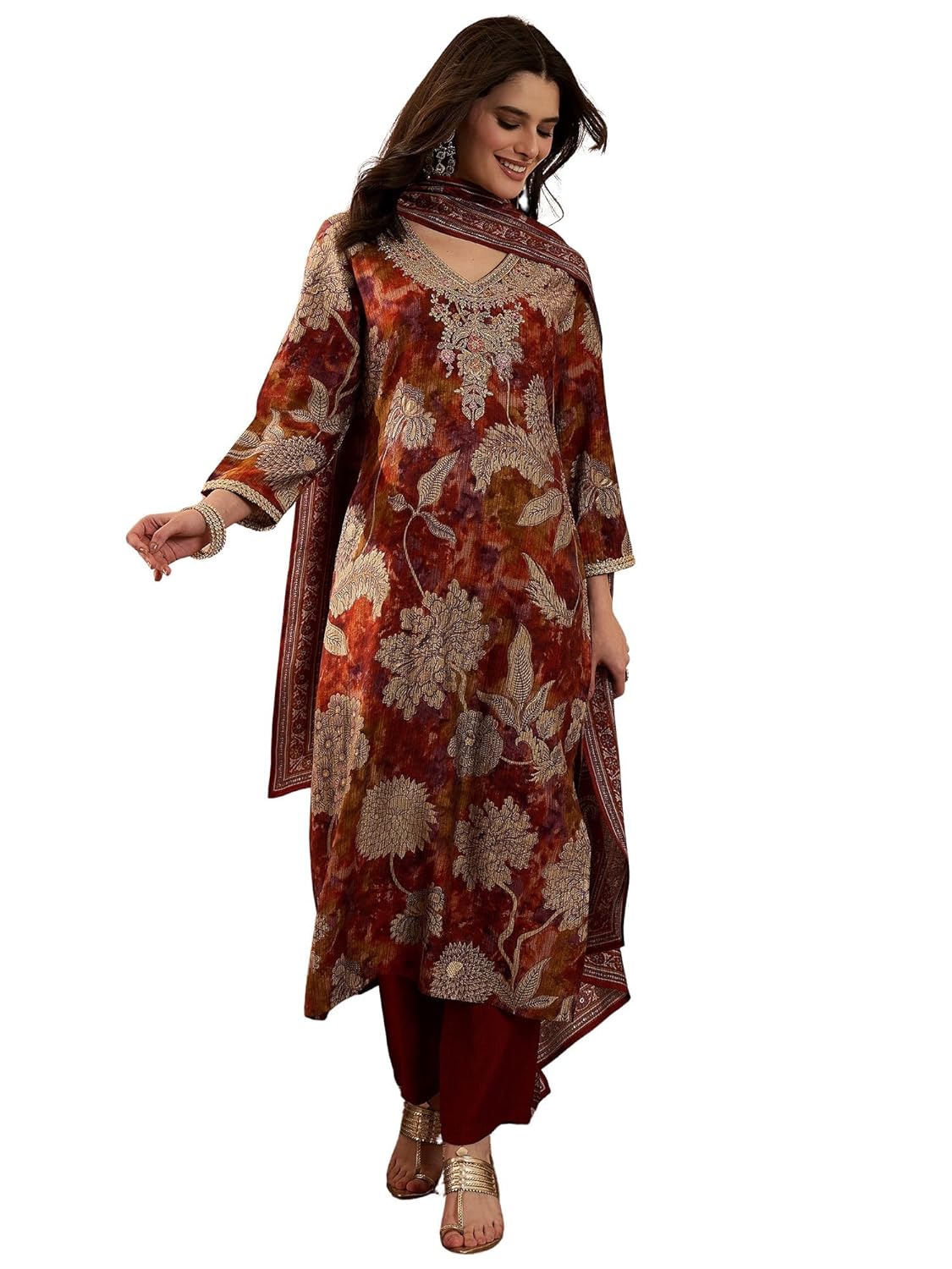 Choosing the right Womens Shoes product is important, and Vaamsi Women's Brown Polyester Printed Straight Floral Kurta Trousers With Dupatta Set | Fusion Straight Kurta Set For Wom stands out because of its trusted performance and reliability. It is suitable for beginners as well as professionals, making it a versatile choice for various needs.
