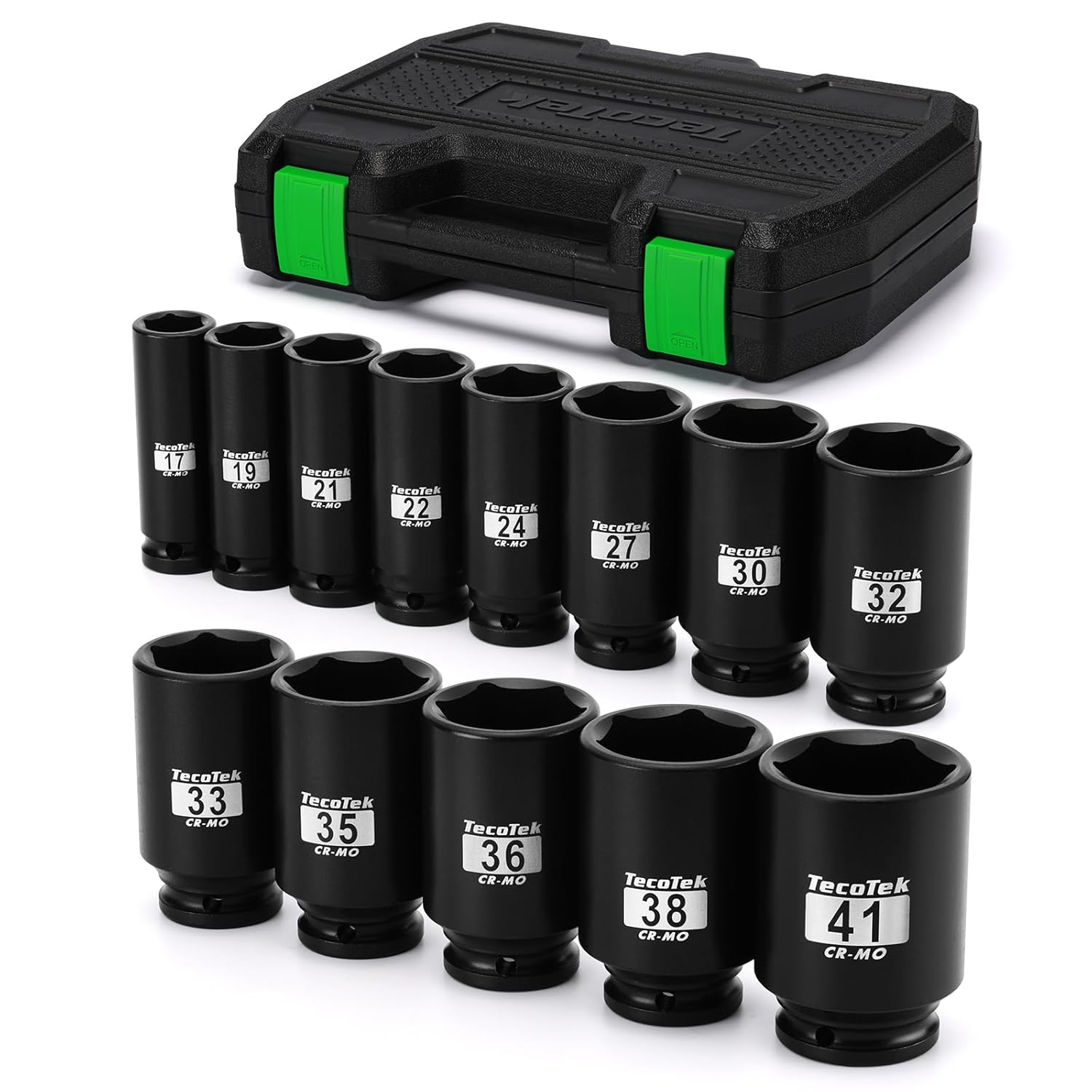 TecoTek 1/2" Drive Deep 6-Point Impact Socket Set, 13-Piece Spindle Axle Nut Impact Socket Set, Cr-Mo, Metric (17mm to 41m...