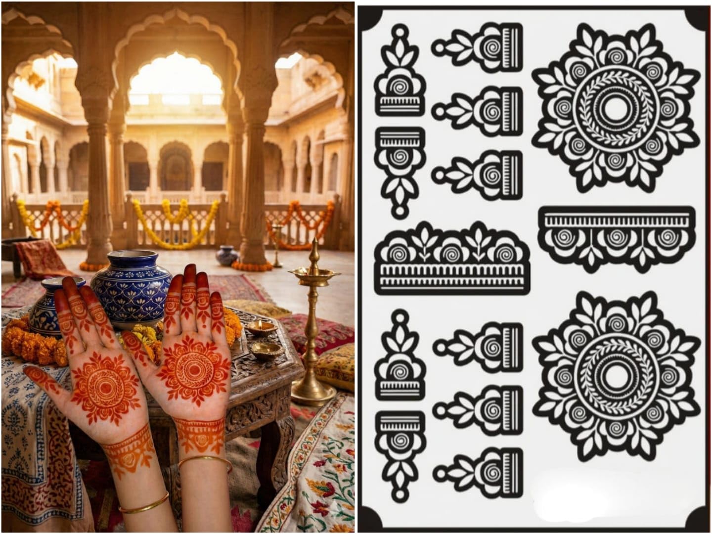 Temporary Henna Mehandi Tattoo Stencils, Traditional Indian Design Patterns for Hand and Body Art
