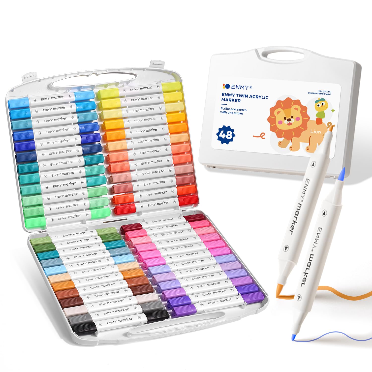 ENMY acrylic paint pencils, 48 Colors Dual Tip Acrylic Markers with Portable Art & Craft Supplies Case for Glass, Ceramic,...