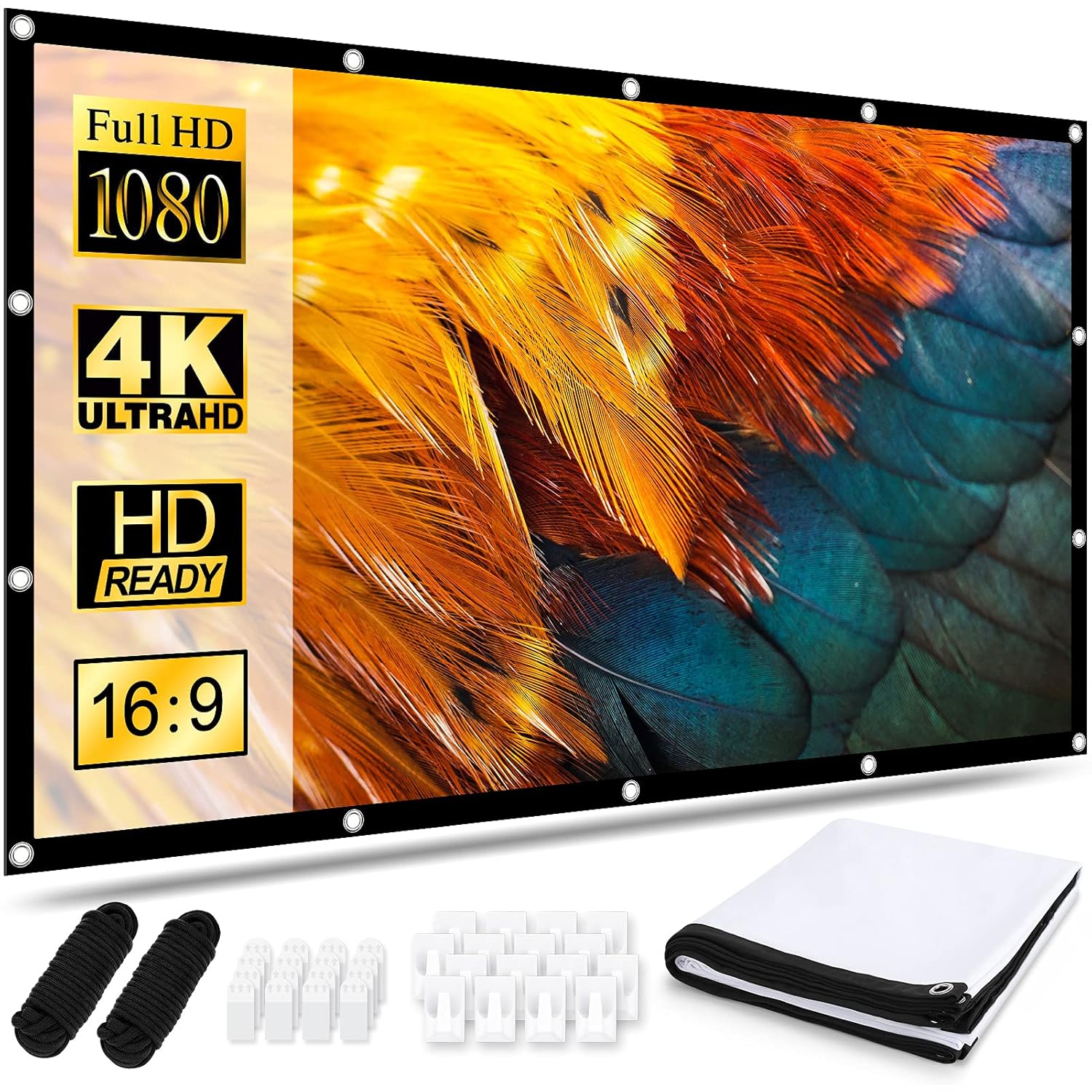 Projector Screen 120 Inch, Portable Movie Screen 16:9 HD 4K Foldable Anti-Crease Projection Screen, Cinema Screen Support ...