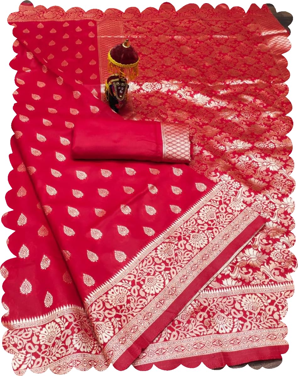 Veglari Women's Original Kanjivaram Pure Jari Weving Soft Silk Reach Jari Riktambarri Pattu Silk Saree With Blouses Piecs ...