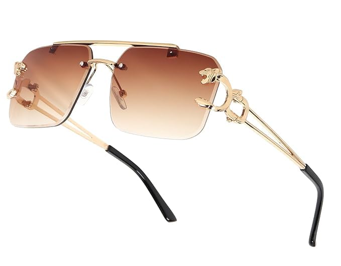 AKAYI Rimless Tiger Head Retro Square Sunglasses Women Men Luxury Shades Frameless Square Tinted Glasses