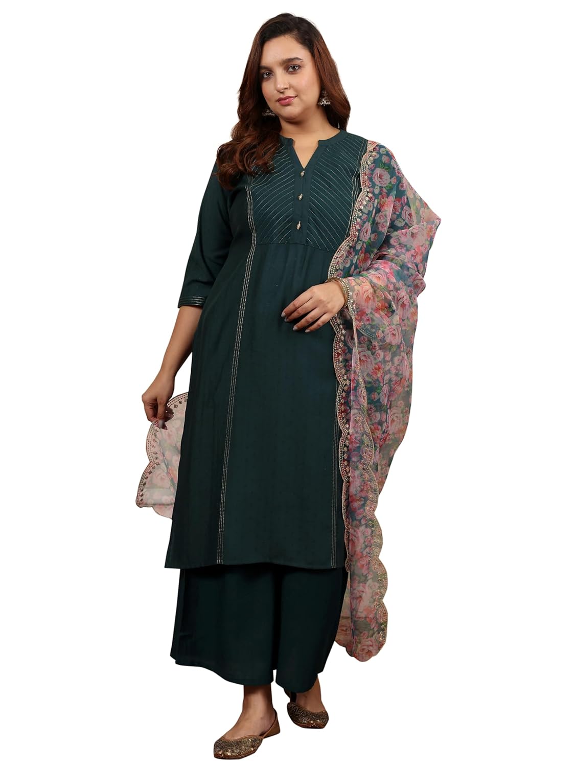 Order now and experience the quality and performance of Extra Love By Libas Woven Design Silk Blend Straight Kurta With Palazzos and Dupatta. Fast delivery and easy ordering options are available to ensure a smooth buying experience.