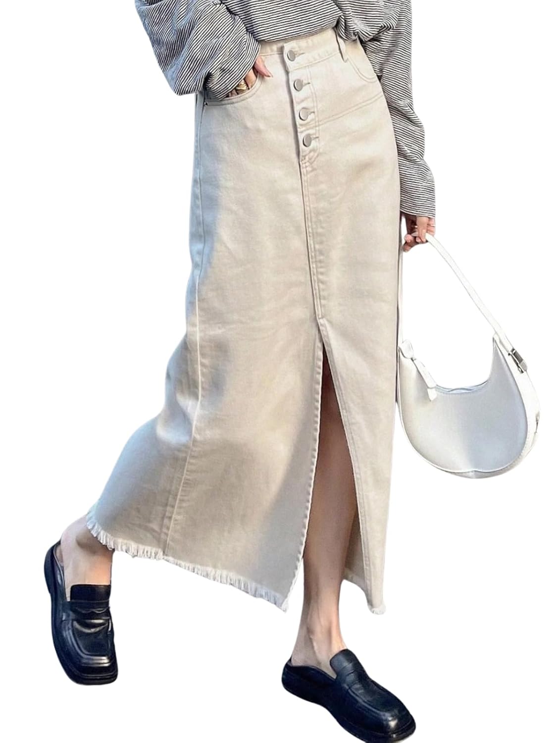 GRECIILOOKS Women's High Waist White Denim Skirt with Front Slit – Long Maxi Jean Skirt Casual Fashion – Stylish Denim Ski...