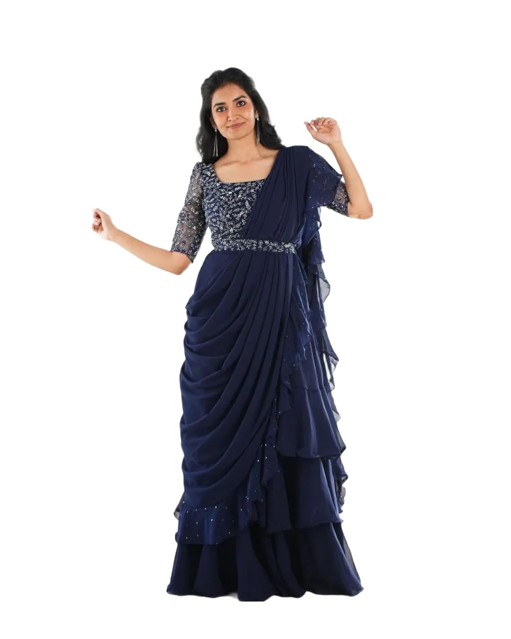 flysta Ready to Wear Drape Saree for Women with Heavy Embroidered Designer Blouse Faux Georgette Pre Stitched Saree with T...