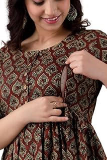 Maternity Feeding Kurti for Women, Cotton Blend Anarkali Dress with Nursing Zip (in, Alpha, L, Regular, PAAN)